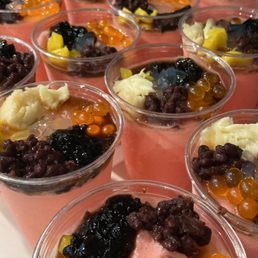 This is one of my go-to's for Indonesian Restaurants. Singkawang has one of the best pempek (fish cake with sweet sour vinegar sauce) that I've tried so far in California area. Being Indonesian; of course I am a bit picky when comes to my own but Singkawang does deliver. I always order their pempek. Their Soto Betawi (beef soup) is also pretty good - always comes super hot, not luke warm like some other restaurants. The Laksa is great - comes with vermicelli/rice noodle. Soto Betawi and Laksa would be my 2 choices for soup dish there. I ordered the Nasi Padang - which usually comes with chicken curry but when I was there, they were out of the chicken curry so they gave me fried chicken. It also comes with Beef Rendang (Rendang is one of the top/popular Indonesian dishes). It also comes with curry veggies and chili sauce which completes the dish. What is Indonesian food without their chili sauce? This restaurant is connected to the badminton arena. They usually open the side door so people who play there, can order food or drink and they can just get the food through that door without going around through the entrance. But I think since they open that side door, the air inside the restaurant becomes kind of warm. This is the downside. Other than that, I think the food and service are great. They give a complimentary sweet black rice dessert at the end for each person.